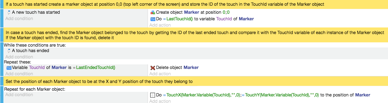 Abra este ejemplo Online: https://editor.gdevelop.io?project=example://multitouch