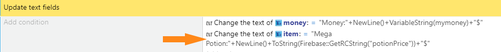 Il est important de faire attention en remplaçant des valeurs fixes par des valeurs modulables. Il faut par example mettre a jour dynamiquement des valeurs qui étaient fixes. Dans mon cas, il faut que je rajoute une action pour mettre a jour mon texte précédemment statique en cas de changement de la valeur: