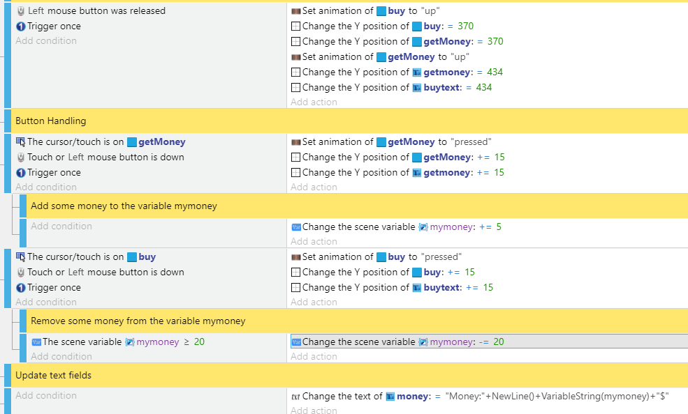 Les deux variables que je vais utiliser sont pour décider la valeur retirée et/ou ajoutée quand on clique sur un des boutons.