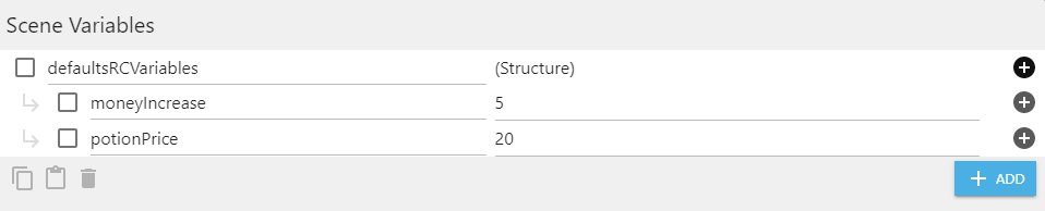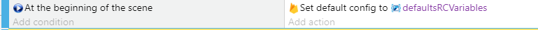 La configuration distante requiert une action pour fonctionner. Elle permet de passer une structure comme défaut. Ce défaut est important car c'est la valeur qui va être utilisée avant la première connexion avec le serveur ou si le jeu est n'est pas connecté au réseau pour télécharger la configuration. Voici la structure que je vais utiliser comme défaut (seul le contenu de la structure est importante, pas son nom)