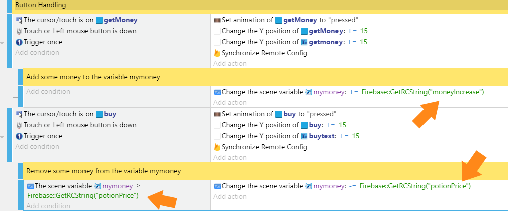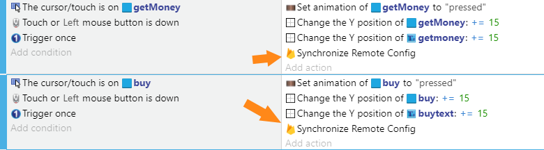 Cette extension te laisse choisir quand synchroniser la configuration avec le serveur. Le moyen conseillé et d'utiliser l'action pour synchroniser la configuration au démarrage du jeu et dans un événement périodique. C'est a dire dans un événement qui arrive souvent mais pas trop dans le jeu \<WRAP center round info 90%> Il est aussi possible d'utiliser l'action "Mettre l'auto synchronisation" mais elle n'est pas très fiable. {.is-info} Comme évènement périodique je pourrais utiliser un Timer, mais je veux garder le code simple et utilise donc un événement périodique existant; l'appui de bouton: