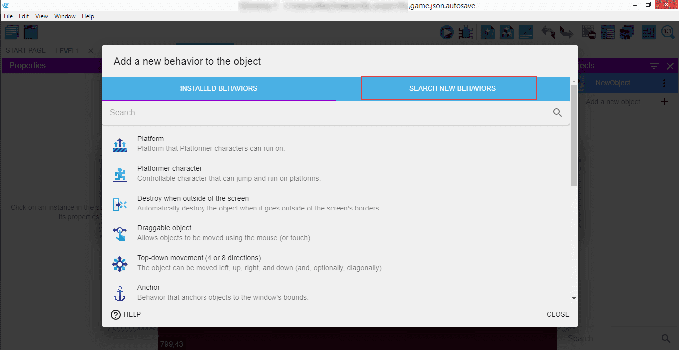 Cliquez ensuite sur l'onglet SEARCH NEW BEHAVIORS ...