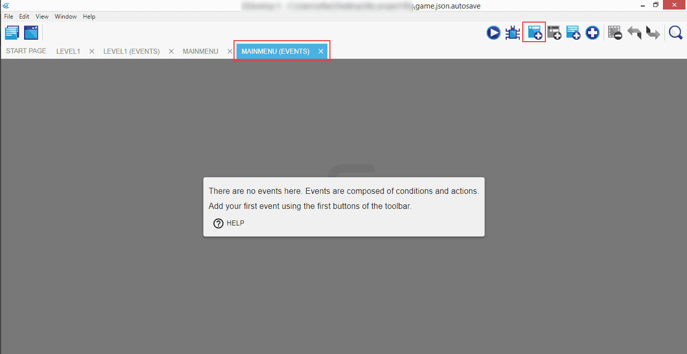 Activez l'onglet MAINMENU (EVENTS), et créez un nouvel événement (bouton en haut à droite).