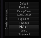 Jfxr provides some options for the type of sound effects, that you can choose from. Like, hit/damage, coin collect/powerup, etc..