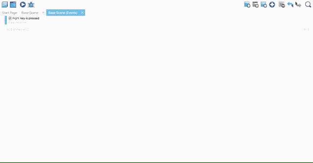 Click on the "Base Scene (Events)" tab to open the events editor, where we define the rules of the game using conditions and actions. Click on the event icon to add an empty event.