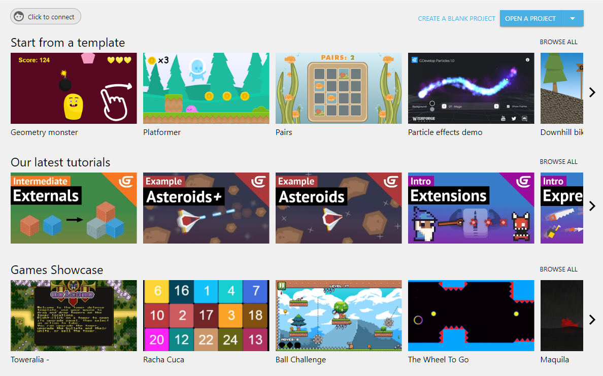 - Запустите GDevelop.